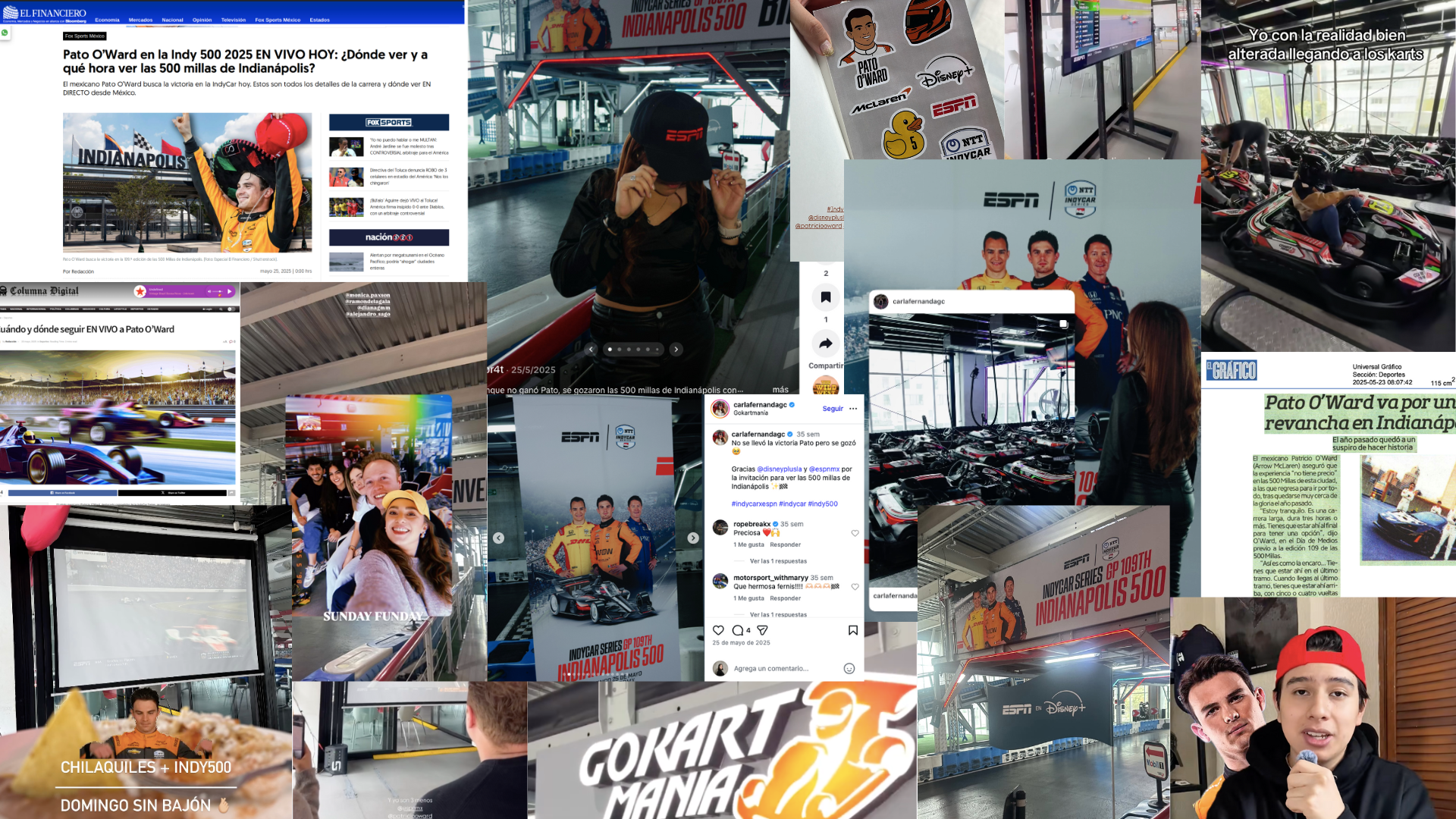Antes de la transmisión, los asistentes participaron en eliminatorias y una carrera final de karts, lo que generó un ambiente de cercanía, emoción y competencia amistosa. Este momento previo no solo reforzó la experiencia, sino que permitió que el contenido comenzara a generarse de manera orgánica, desde la vivencia y no desde la instrucción. Posteriormente, los creadores se reunieron para seguir la transmisión en vivo de las 500 Millas de Indianapolis a través de Disney+, compartiendo el momento con sus comunidades en tiempo real. Como parte de la experiencia, tanto los creadores de contenido como sus acompañantes recibieron un kit especial de ESPN y Disney+, diseñado especialmente para conmemorar la carrera y extender la experiencia más allá de la pantalla.